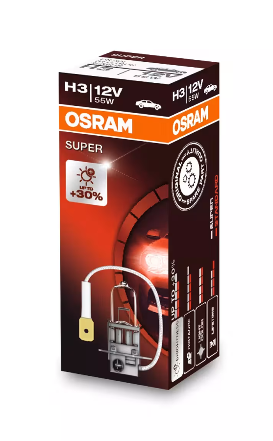Лампы головного света SUPER излучают на 30% больше света по сравнению со стандартными лампами, что позволяет раньше заметить и распознать дорожные знаки, препятствия и опасности. Линейка SUPER включает основные типы ламп.