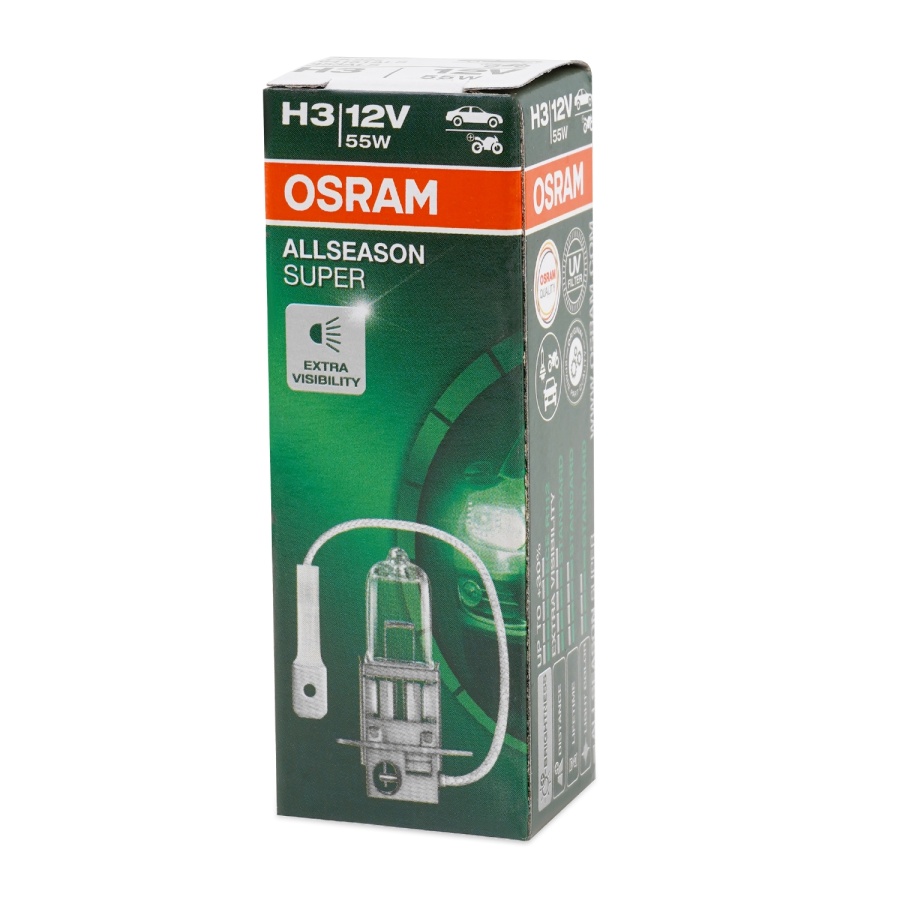 Автолампа галогенная H3 (55W PK22s +30%) ALLSEASON 12V 3200K OSRAM