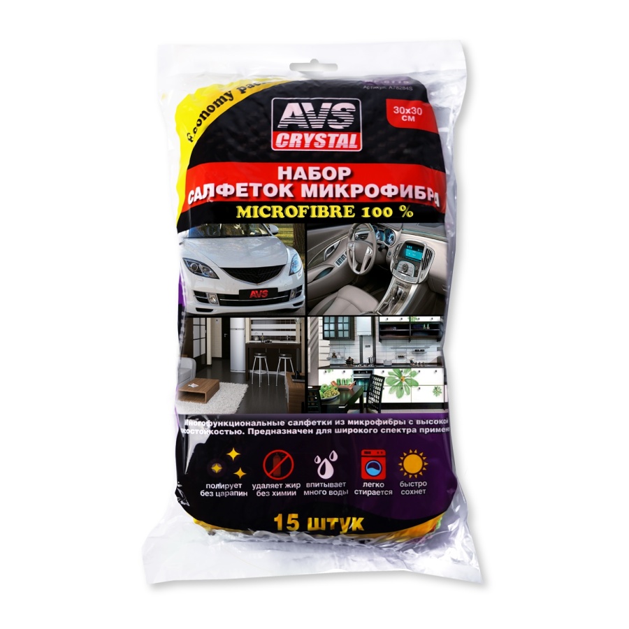 14 Набор салфеток экономичный для комплексной очистки AVS MF-6119 (микроф.- 15шт, 30х30см)