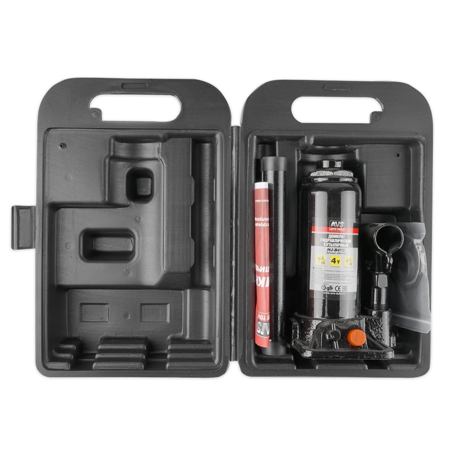 Домкрат гидравлический AVS HJ-B4TC, 4т, 180-350мм. с клапаном, в кейсе (ремкомплект)