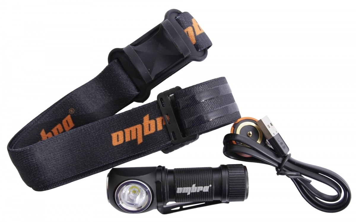Фонарь светодиодный аккумуляторный, налобный, со световым пучком 350 Лм, Ombra A90066 (59110)