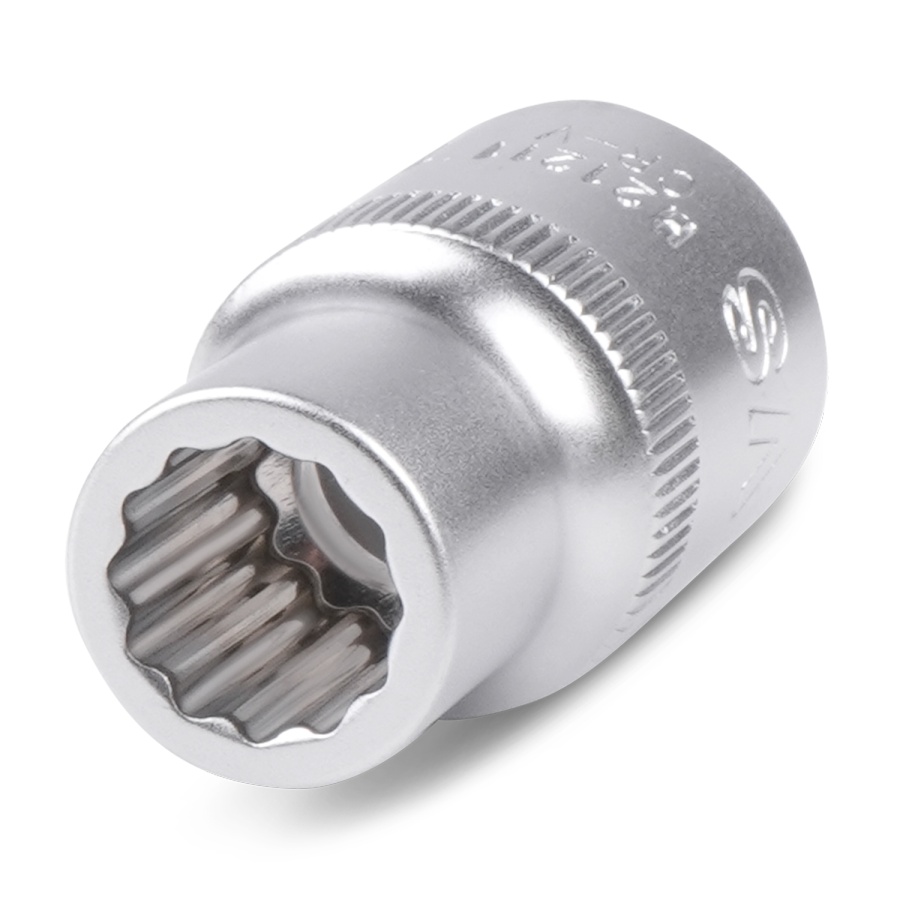 Торцевая головка имеет 12-гранный профиль, что делает ее удобнее в применении по сравнению с 6-гранным, так как какой профиль предоставляет большую свободу для позиционирования головки на крепеже.