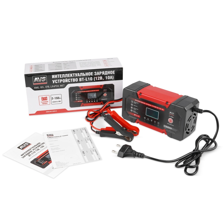 Интеллектуальное зарядное устройство для автомобильного аккумулятора AVS BT-L10 (10A) 12V