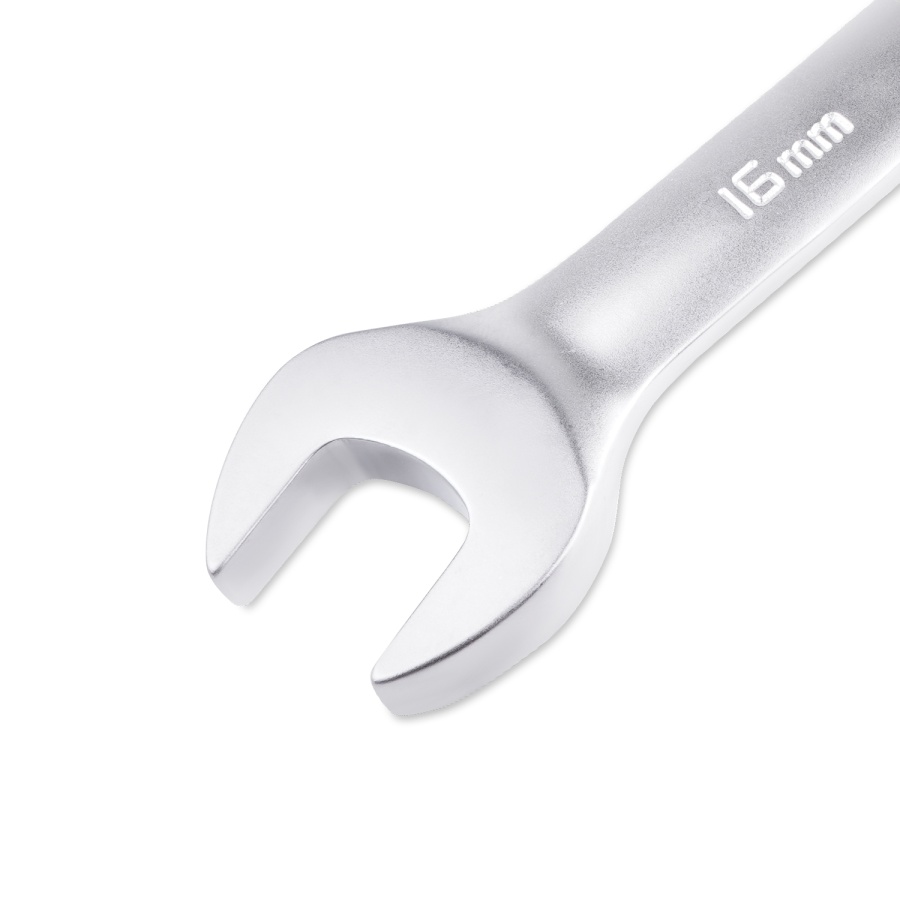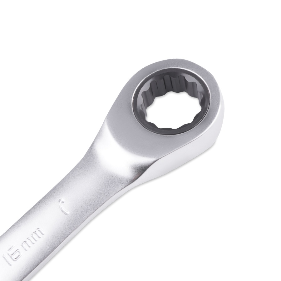 Комбинированный гаечный ключ из хромованадиевой стали с 72-зубцовым храповым механизмом в накидной части. Благодаря наличию трещотки, ключ ускоряет отворачивание и заворачивание крепежа как в обычных условиях, так и в условиях ограниченного пространства.