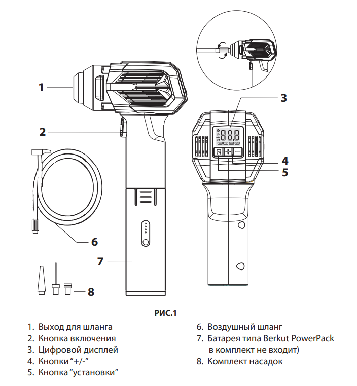 Компрессор автомобильный BERKUT DAC-300 c аккумулятором JSL-18000PP (комплект)
