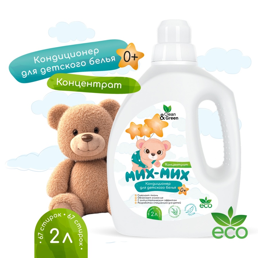 Кондиционер для детского белья Мих-Мих (гипоаллергенный) 2 л. (ПЭНД) Clean&Green CG8428