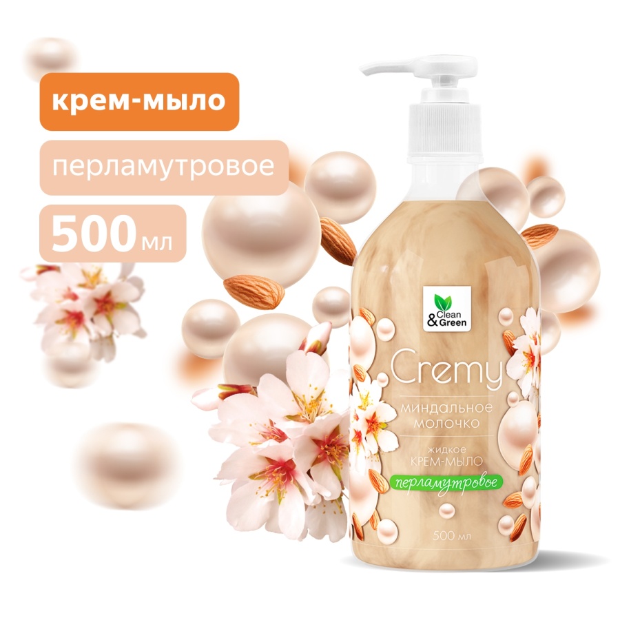 Крем-мыло жидкое с перламутром "Cremy" миндальное молочко с дозатором 500 мл. Clean&Green CG8450