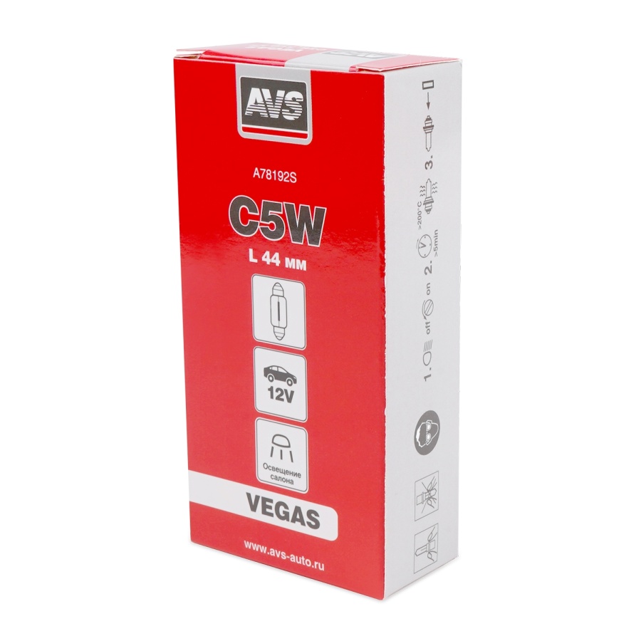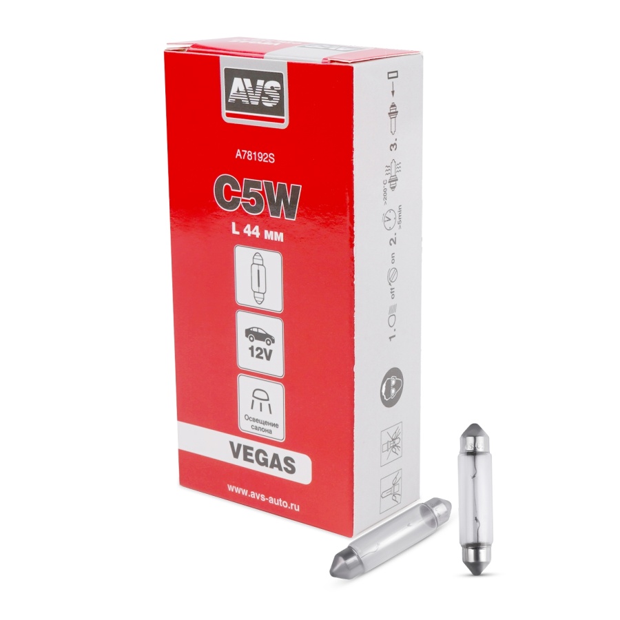 Лампа AVS Vegas 12V.С5W(SV8.5/8)L44мм. BOX 10шт.