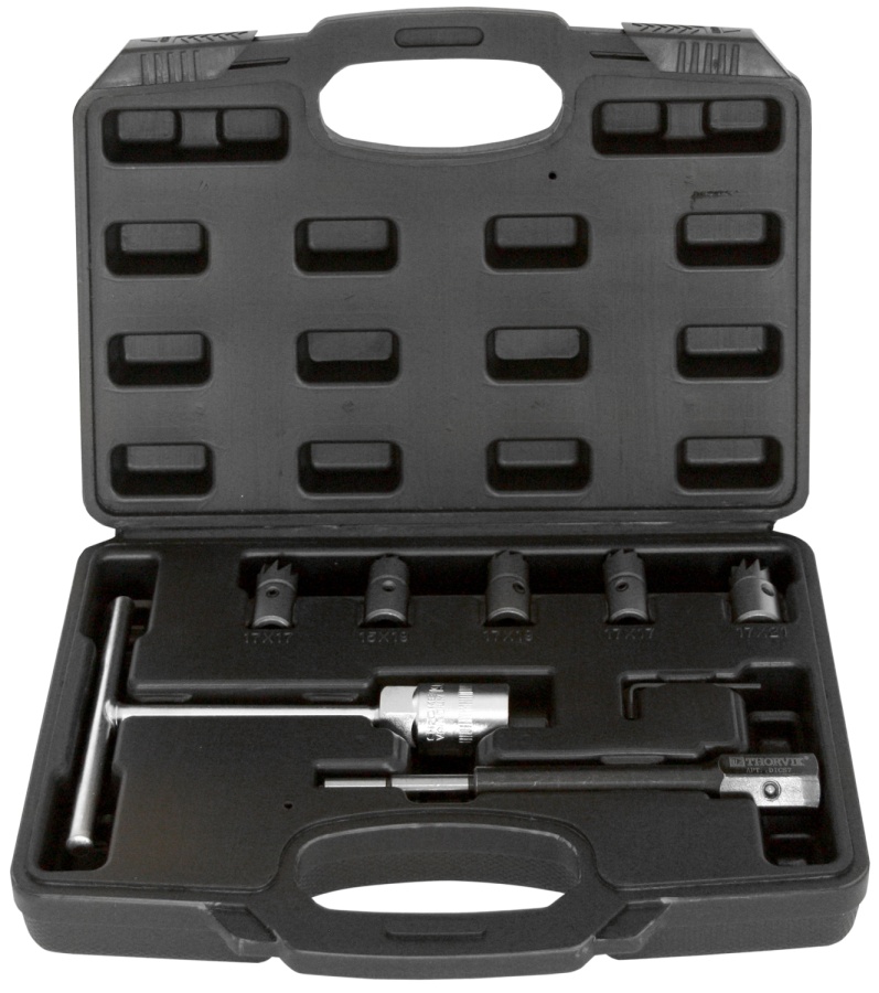 Набор для восстановления посадочных отверстий дизельных форсунок применяется для восстановления рабочей поверхности посадочных мест дизельных форсунок.