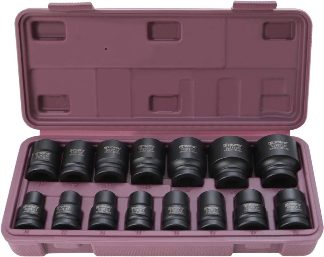 Набор головок торцевых ударных 1/2 DR, 10-32 мм, 15 предметов, Thorvik S23S1115S (54417)