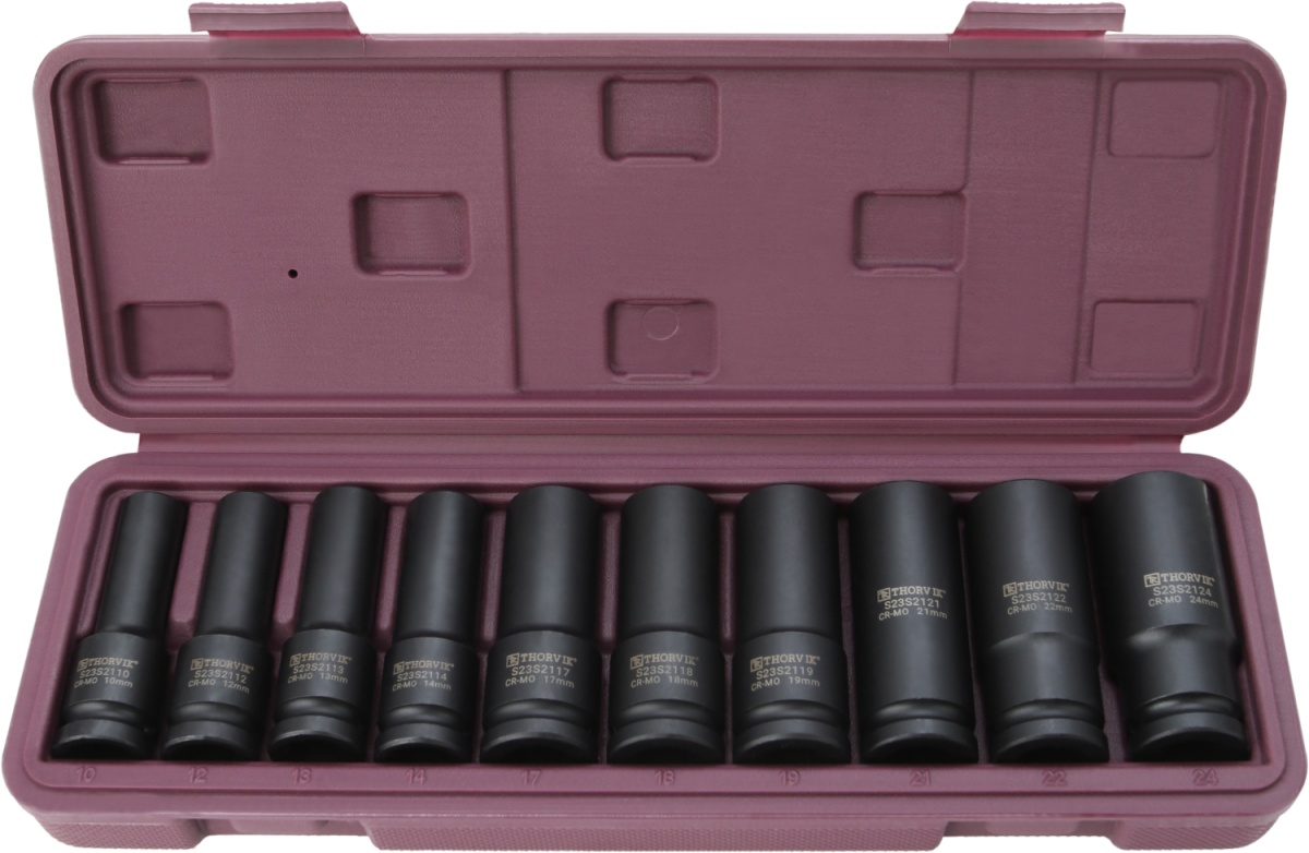 Набор головок торцевых ударных глубоких 1/2 DR, 10-24 мм, 10 предметов, Thorvik S23S2110S (54446)