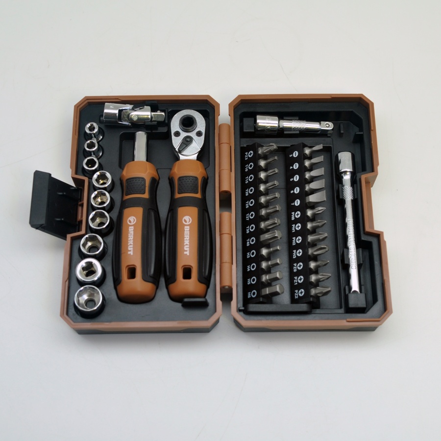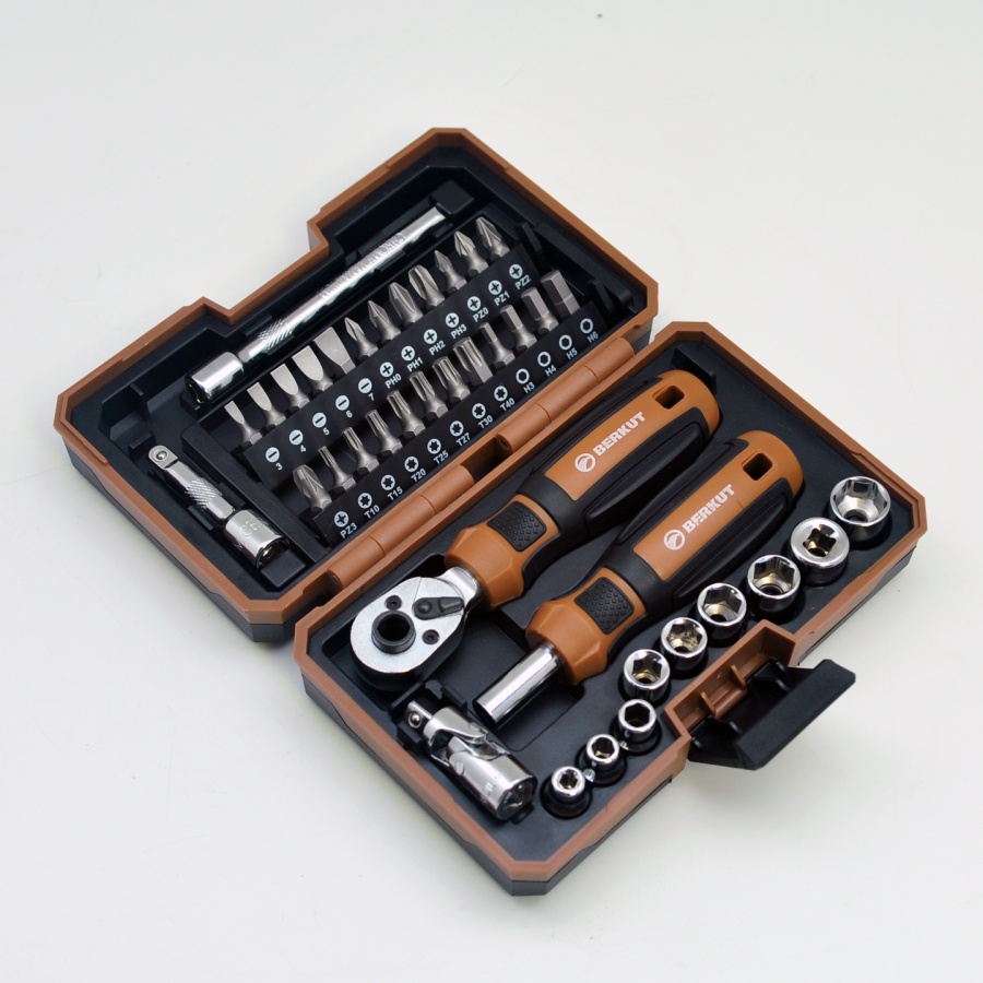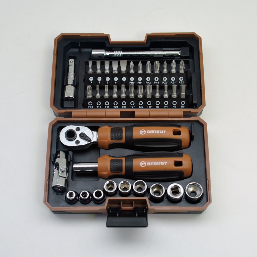 Набор инструментов с трещоткой, битами и головками 1/4 DR, BERKUT BS-SET9538 (38 предметов) в кейсе