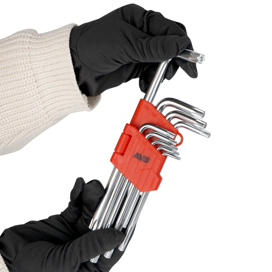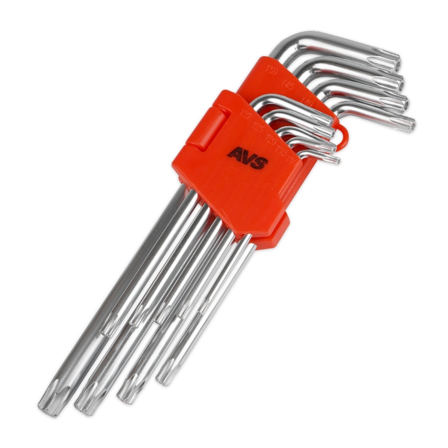 Набор ключей торцевых изогнутых TORX с отверстием 9 предметов (T10-T50) AVS TXL-9H
