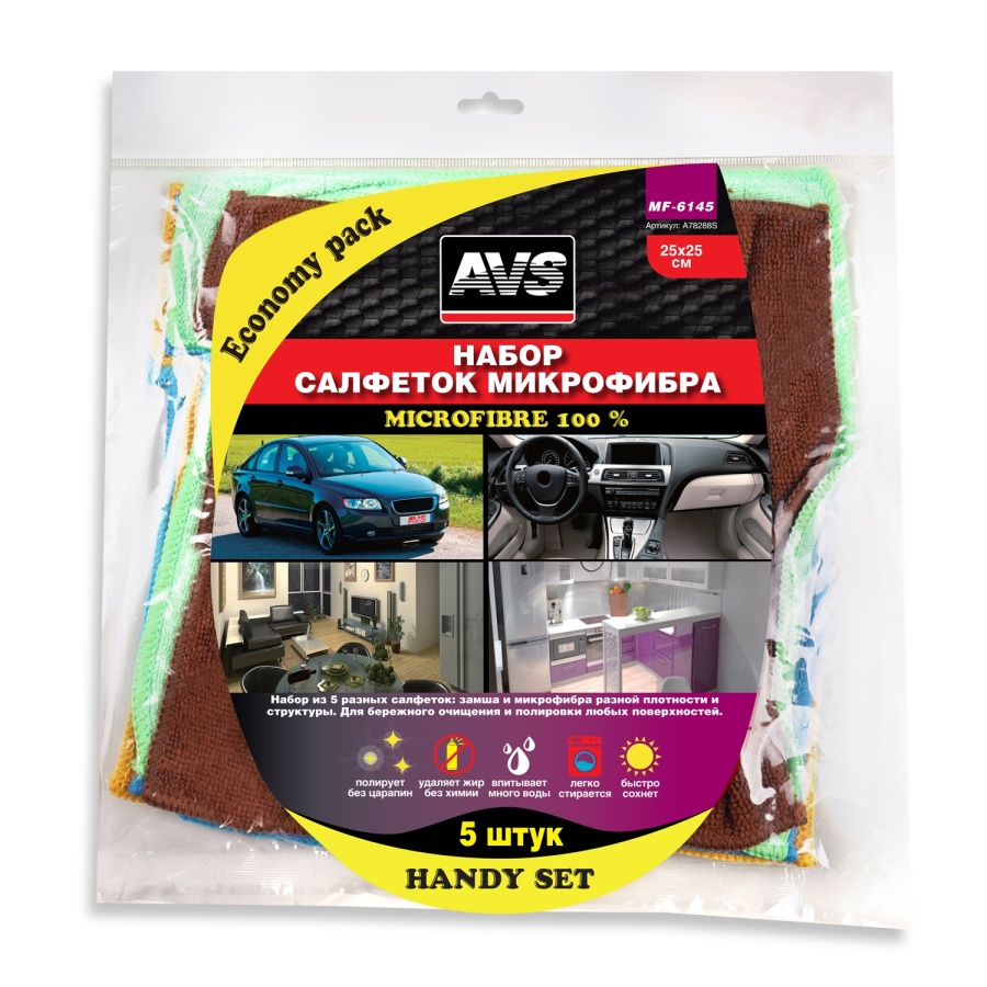 19 Набор салфеток для любых поверхностей AVS MF-6145 (5 разных, 25х25см)