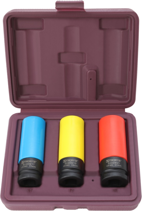 Набор ударных глубоких головок для лекгосплавных дисков, 1/2DR (17,19,21 мм) Thorvik S23SW3S (54465)