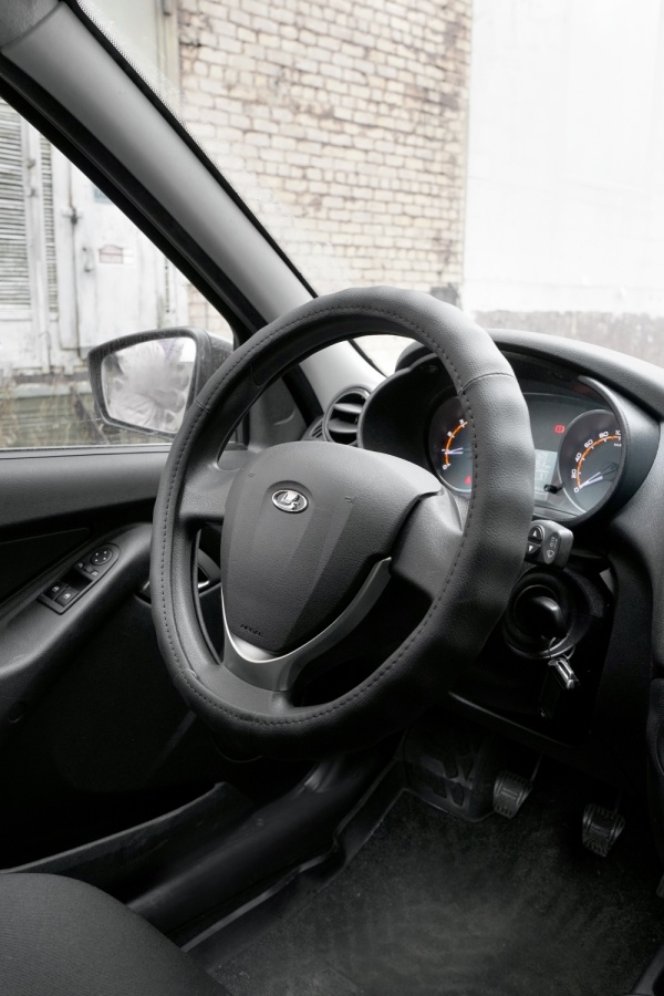 Оплетка из натуральной кожи с гладкой классической фактурой. Придаст респектабельности любому интерьеру автомобиля. Волнообразная форма с углублениями под пальцы способствует удобному хвату руля при маневренном вождении.