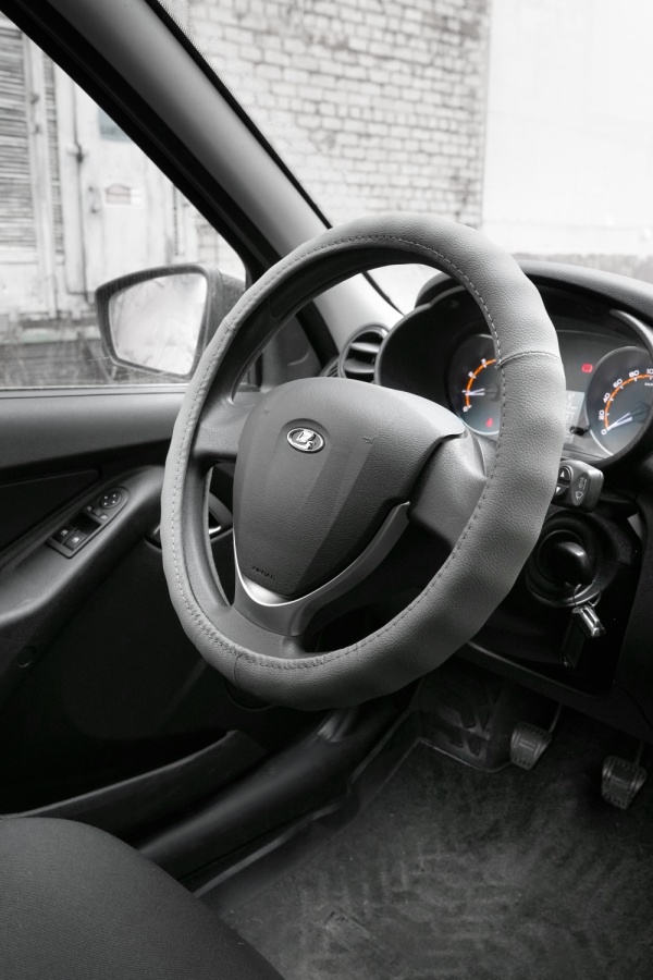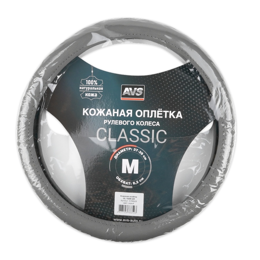 Оплетка на руль (нат. кожа) AVS GL-165M-GR (размер M, серый) - Серия "Classic"