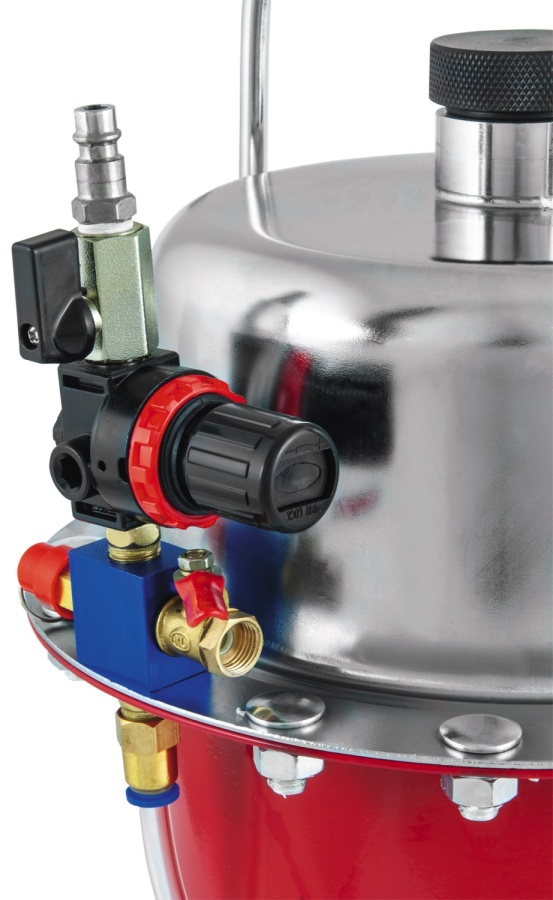 Устройство оснащено специальным резервуаром под высокое давление, который может быть предварительно заполнен сжатым воздухом.
