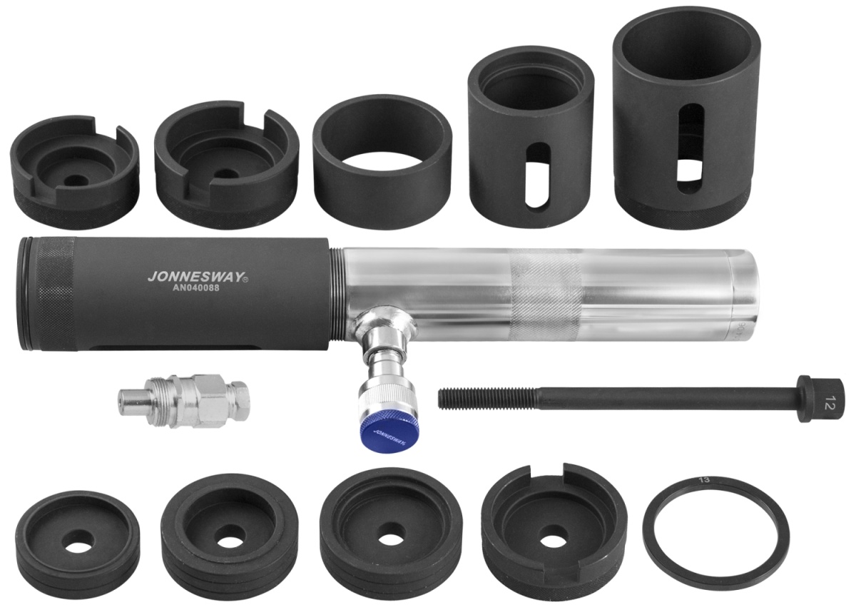 <p>Набор приспособлений для демонтажа и установки резинометаллических деталей (сайлентблоков) элементов подвески автомобилей BMW Е32,Е34,Е39,Е60,Е65,Е66. Применяется в сочетании ручным гидравлическим насосом.</p>