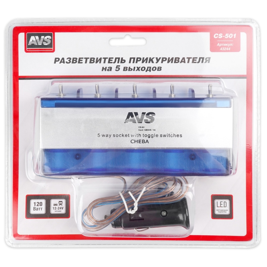 Разветвитель прикуривателя AVS 12/24 (на 5 выходов) CS501