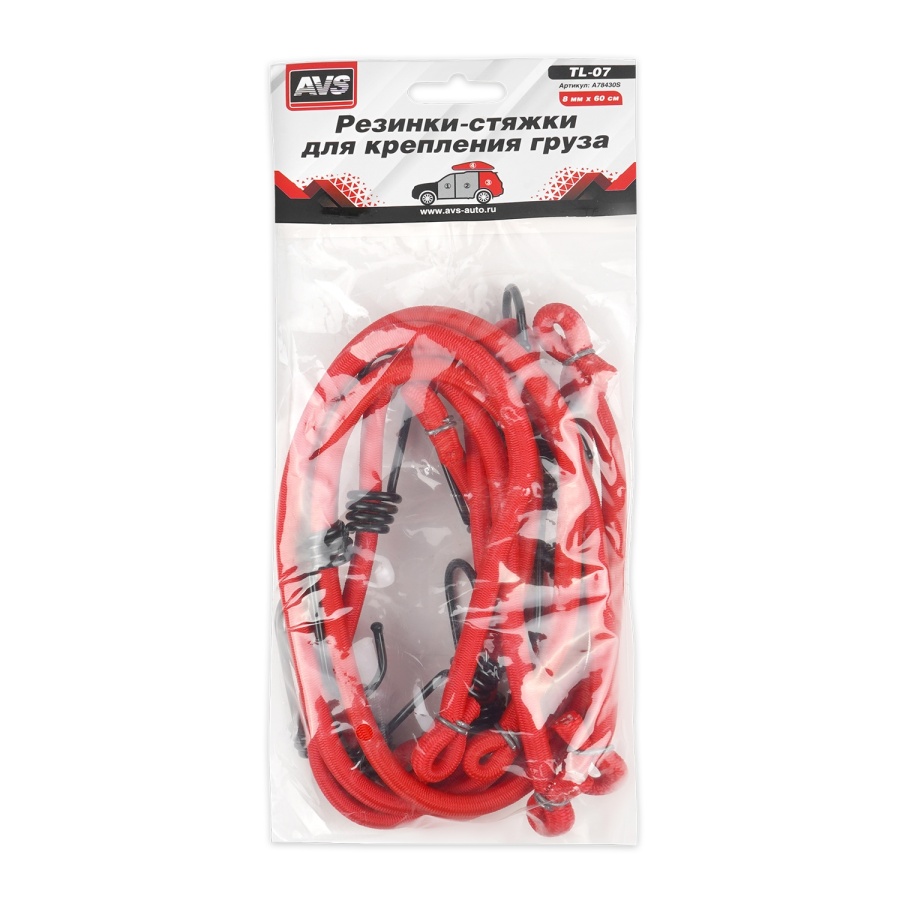 Резинка крепления груза 60 см х 8 мм, 5 шт (метал.крючки) AVS TL-07
