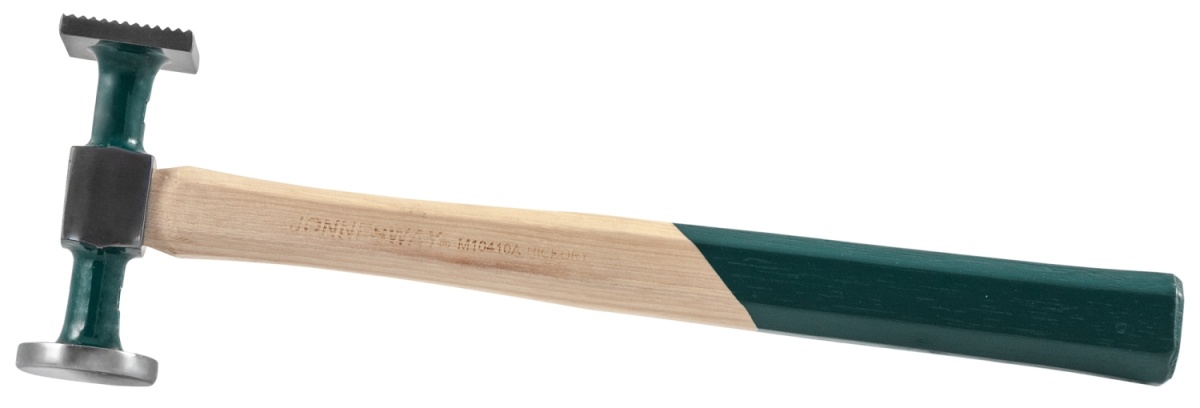 <p >Рихтовочный молоток с квадратным бойком с грубой насечкой и круглым бойком без насечки. Применяется для первичной вытяжки металла. Изготовлен из углеродистой стали. Рукоятка-орех (HIKORY).</p>
