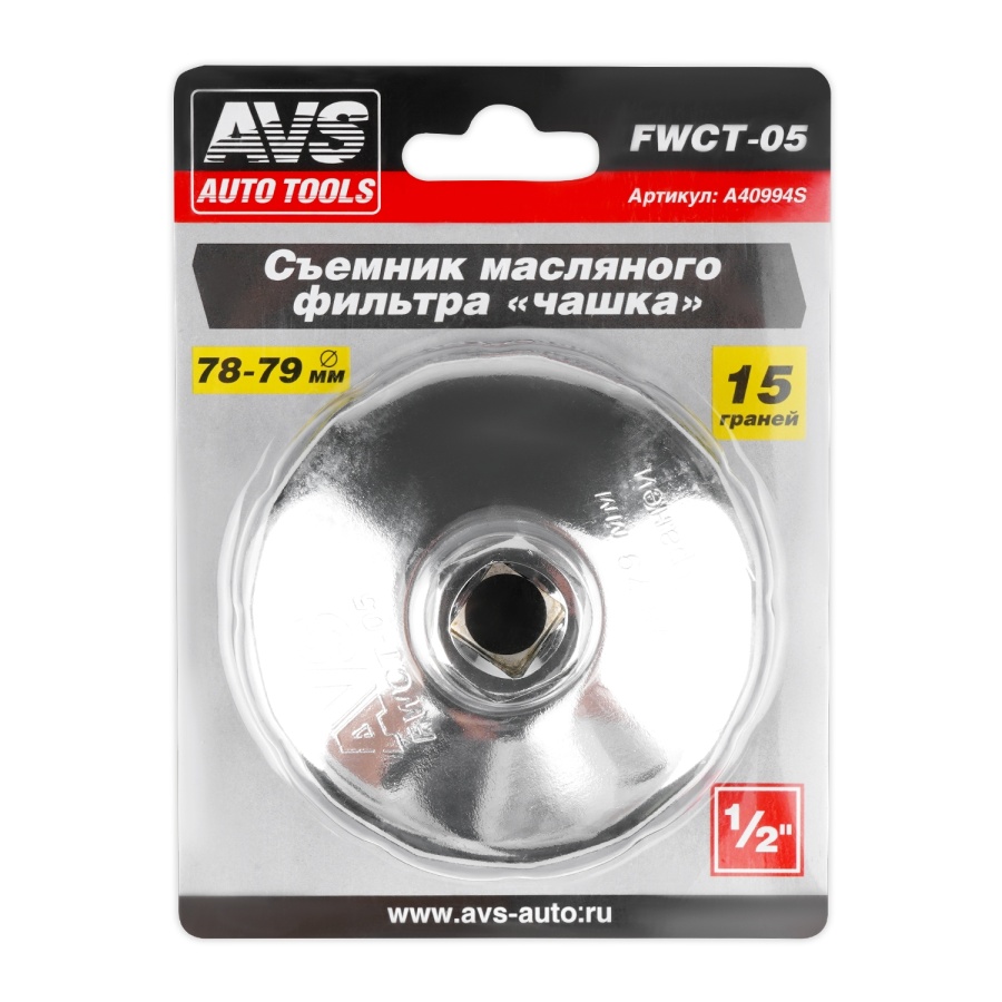Съемник масляного фильтра «чашка» 78-79 мм, 15 граней AVS FWCT-05
