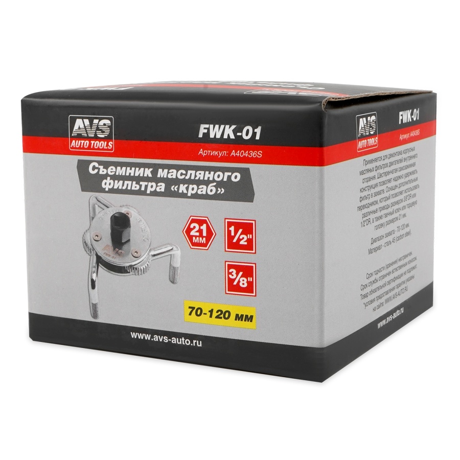 Съемник масляного фильтра «краб» 70-120 мм AVS FWK-01