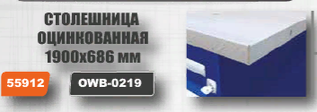 Столешница оцинкованная для верстака с двумя тумбами, 1900х686 мм Ombra OWB-0219 (55912)