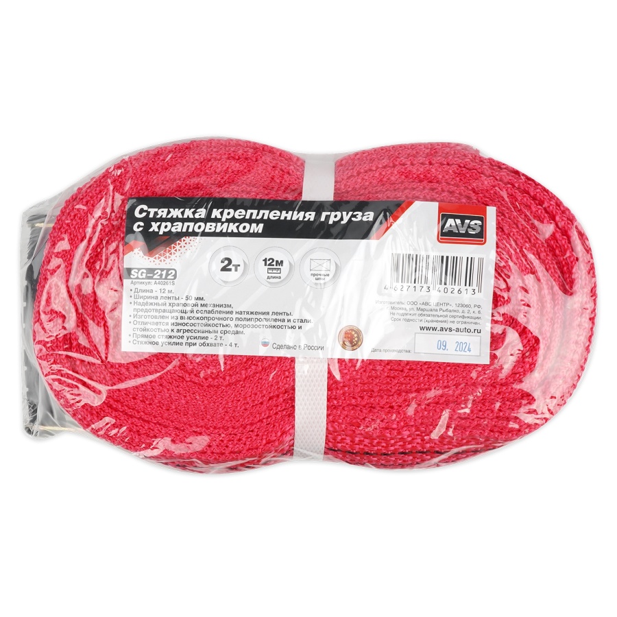 Стяжка крепления груза 12 м, 2 т, 50мм с храповиком AVS SG-212