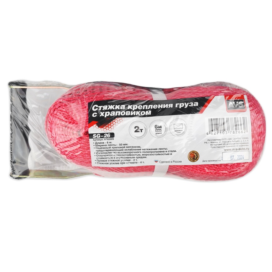 Стяжка крепления груза 6 м, 2 т, 50 мм с храповиком AVS SG-26