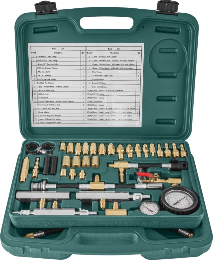 <p>Набор применяется для проведения диагностики топливных систем впрыска бензиновых двигателей и определения неисправностей методом измерения давления в участках магистралей и устройств системы питания. Инструмент рекомендован к использованию при тестировании систем питания автомобилей: ACURA, HONDA, MAZDA, SUZUKI, TOYOTA, AUDI, MERCEDES, PEUGEOT, PORSCHE, VW, VOLVO и других, оборудованных системами питания типа: BOSCH C.I.S/C.I.S.E и аналогичных по принципу действия, механическими системами впрыска (K-JETRONIC, KE-JETRONIC), системами впрыска с электронным управлением (L, LH, LE–JETRONIC, GM-TBI и др.), «Моновпрыск» (MONOTRONIC и др.).</p>
