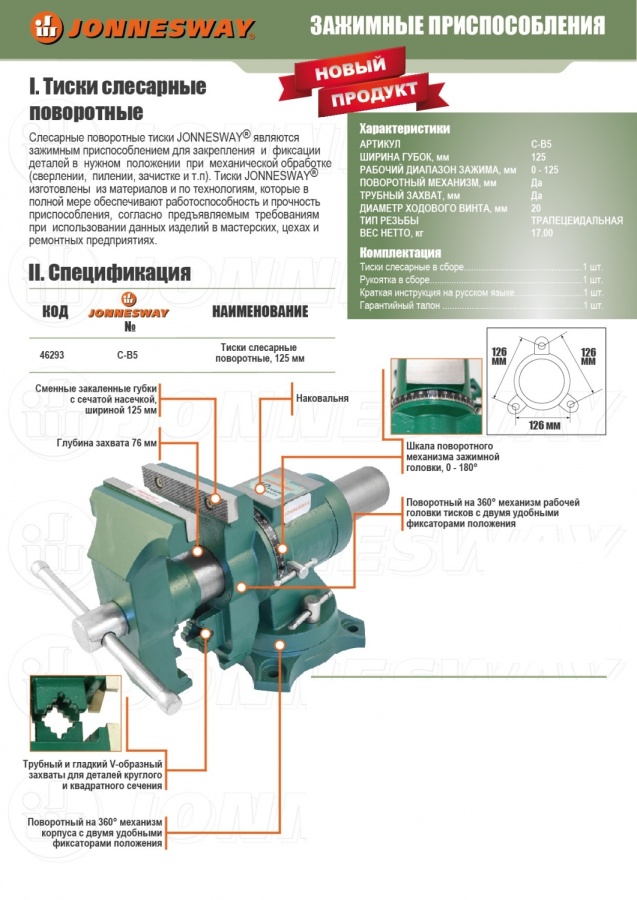 Тиски слесарные поворотные, 125 мм, Jonnesway C-B5 (46293)