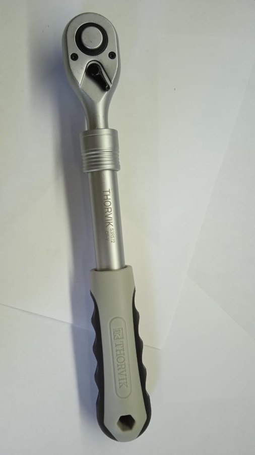 <p>Трещоточная рукоятка 1/2"DR, 72 зубца, Thorvik с флажковым переключателем направления вращения и телескопическим удлинителем, позволяющим изменять длину рукоятки от 300 до 450 мм.</p>