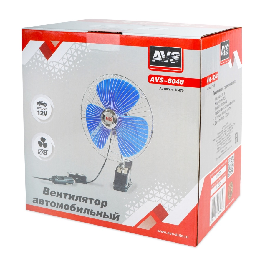 Вентилятор автомобильный AVS 8048 12В 8" (корпус: металл, переключатель, цвет: серебристый)