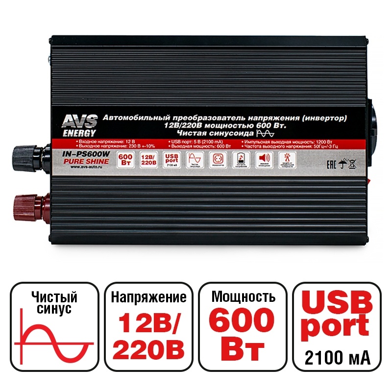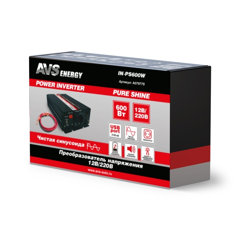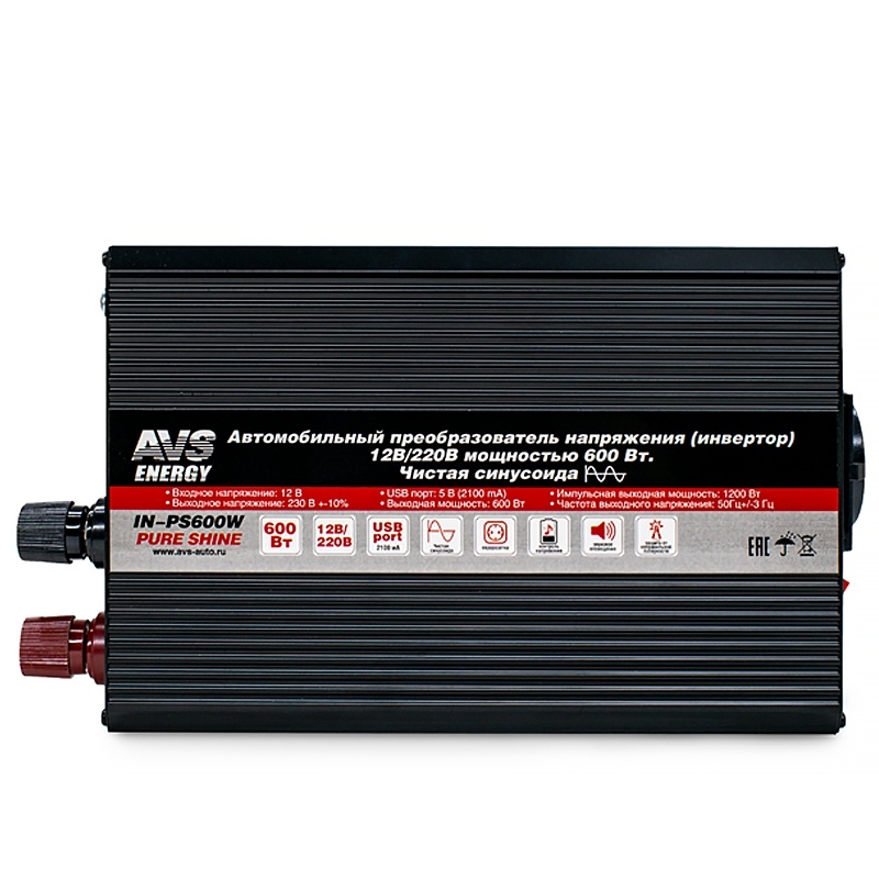 Автомобильный инвертор 12/220V AVS IN-PS600W Чистая синусоида