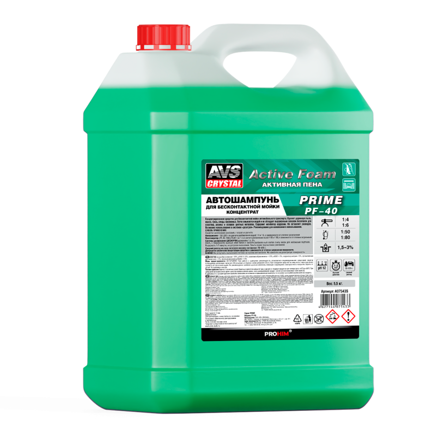 Автошампунь для б/к мойки AVS "Active Foam" 1:4-6 PF-40 PRIME 5,5 кг