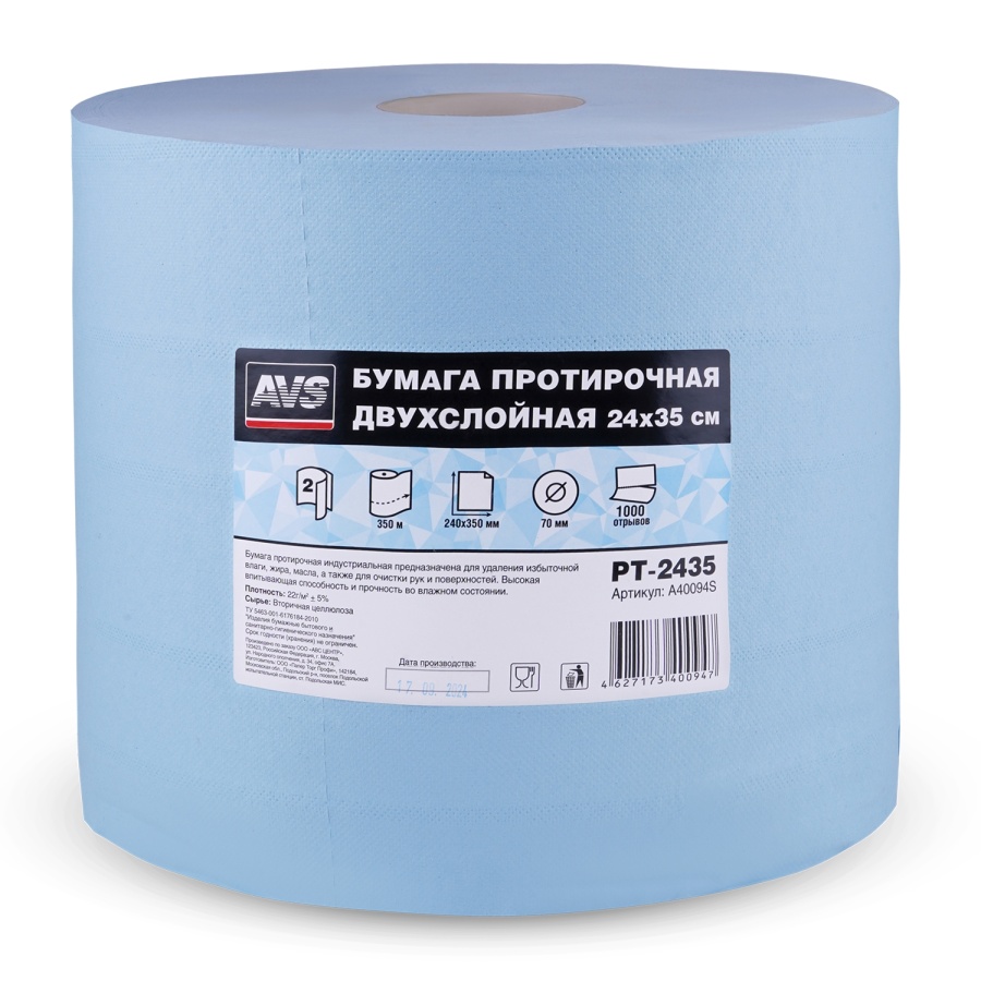 Бумага протирочная двухслойная (24х35см) 1000 листов AVS PT-2435