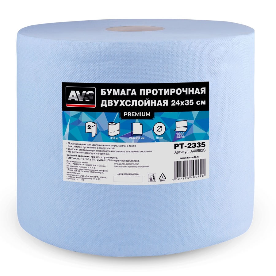 Бумага протирочная двухслойная (24х35см) 1000 листов PREMIUM AVS PT-2335