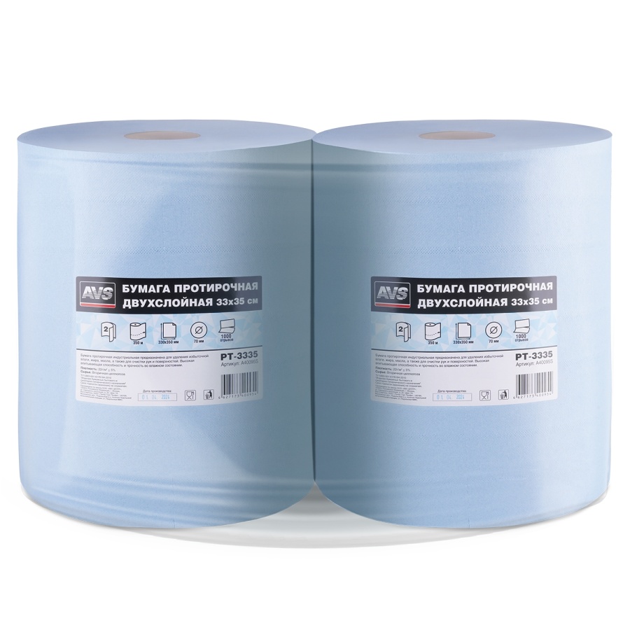 Бумага протирочная двухслойная (33х35см) 1000 листов AVS PT-3335