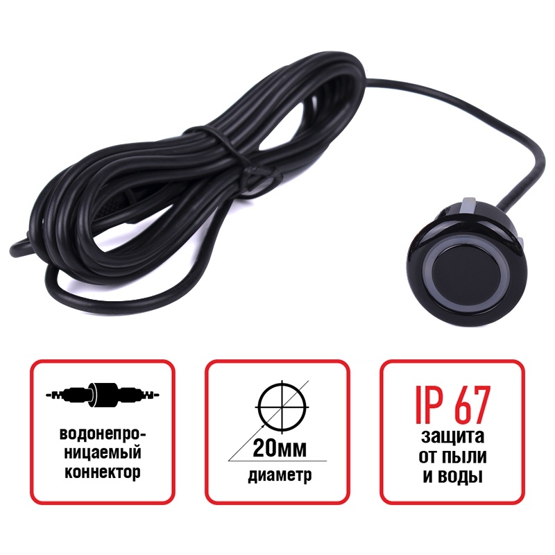 Датчик парктроника 20 мм (черный) с проводом 2,5м AVS PS-20 (1 шт.)