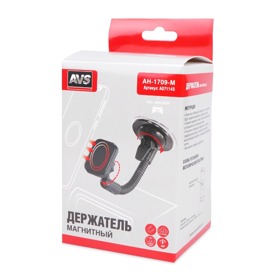 Автомобильный держатель AVS для мобильных устройств обеспечивает надежное крепление и при этом позволяет легко регулировать положение вашего телефона. Легко и надёжно крепится к лобовому стеклу или приборной панели, при помощи вакуумной присоски.