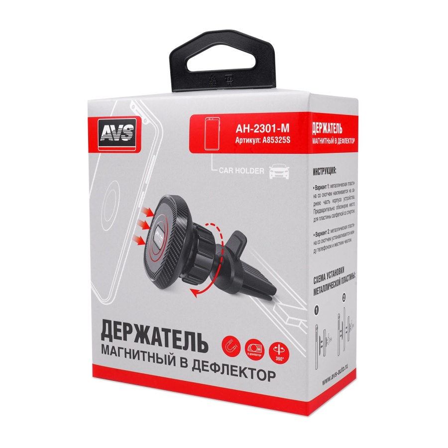 Автомобильный держатель AVS для мобильных устройств обеспечивает надежное крепление и при этом позволяет легко регулировать положение вашего телефона. В комплекте с магнитным держателем идут две металлические пластины разной формы и размера. Лёгкий монтаж на решётку вентиляции в автомобиле.
