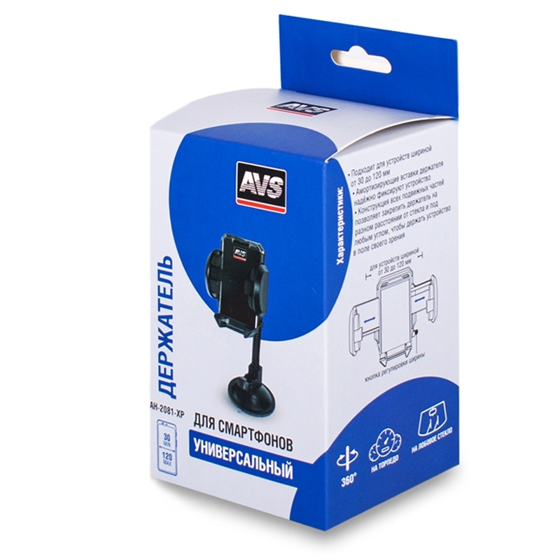 Универсальный держатель – удобный и простой в использовании. Предназначен для устройств шириной от 30 до 120 мм. Легко и надёжно крепится к лобовому стеклу или приборной панели, при помощи вакуумной присоски. Конструкция всех подвижных частей позволяет закрепить держатель на разном расстоянии от стекла и под любым углом, чтобы держать устройство в поле своего зрения. Амортизирующие вставки поглощают вибрации и надёжно фиксируют устройство.
