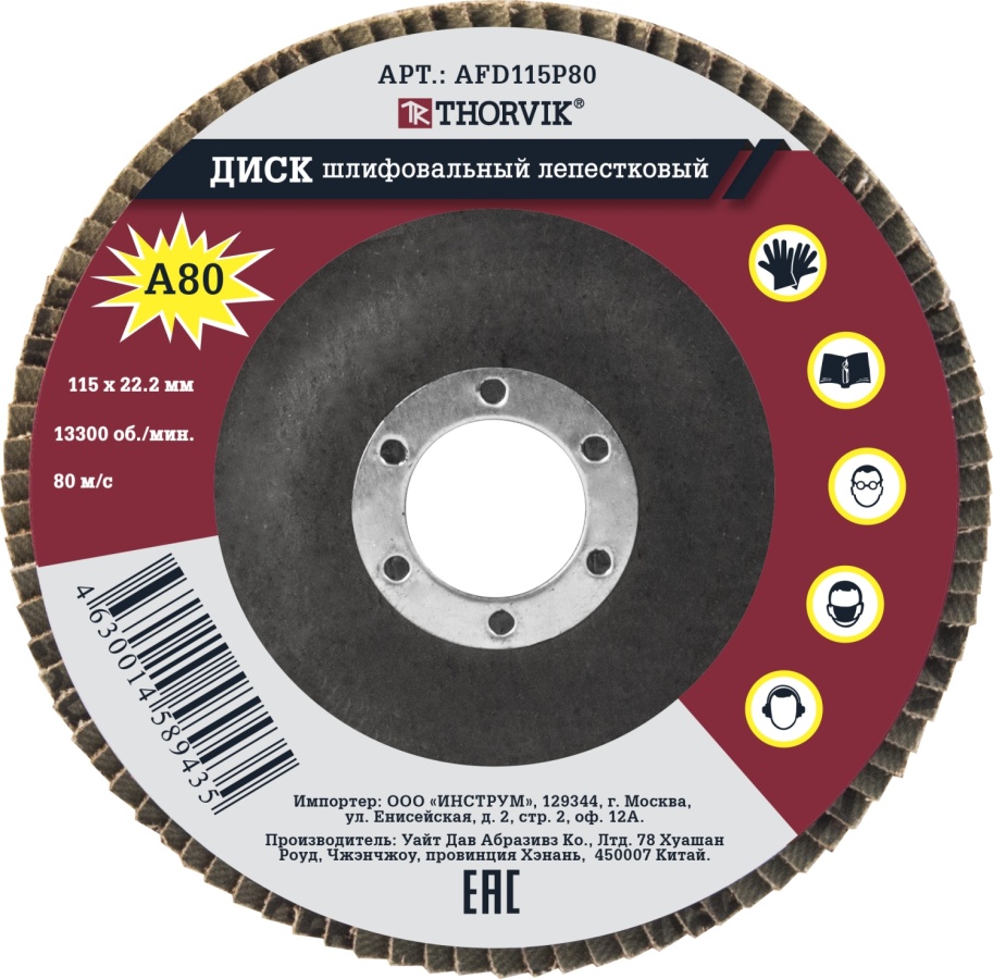 Диск шлифовальный лепестковый торцевой, 115х22,2 мм, Р80, Thorvik AFD115P80