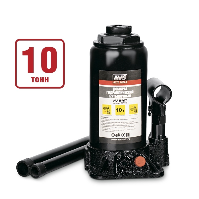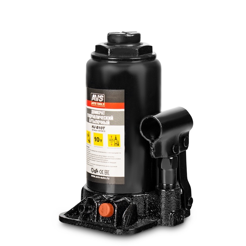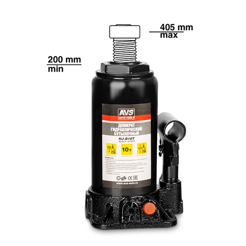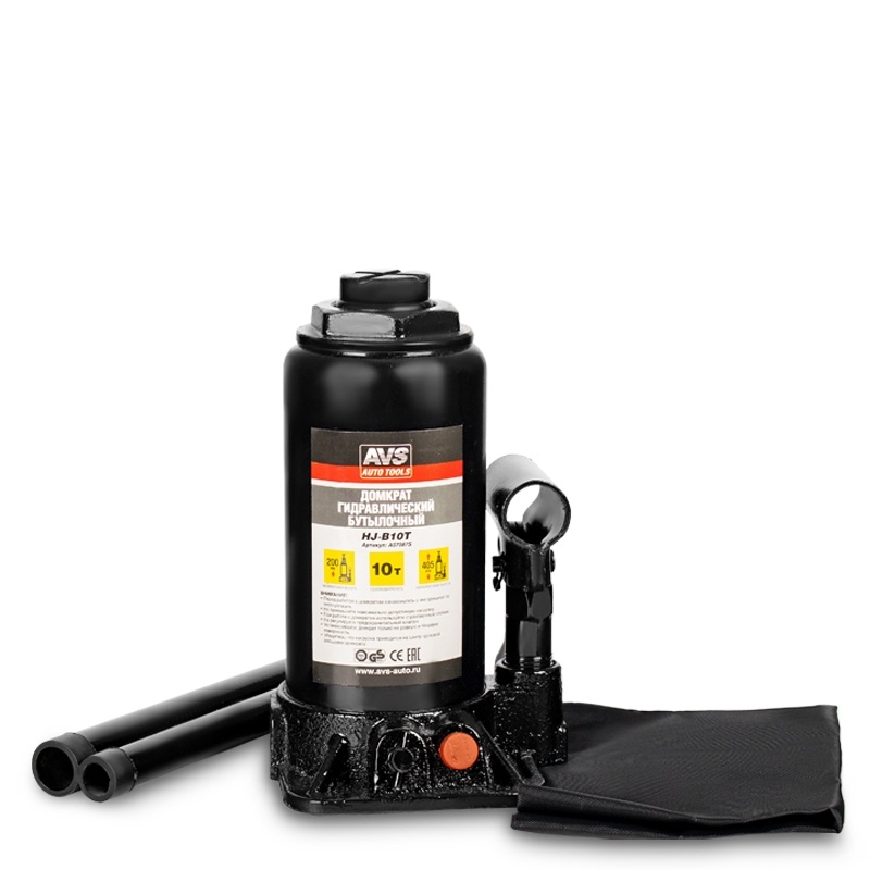 Домкрат гидравлический AVS HJ-B10T, 10т, 200-405мм. с клапаном (сумка, ремкомплект)