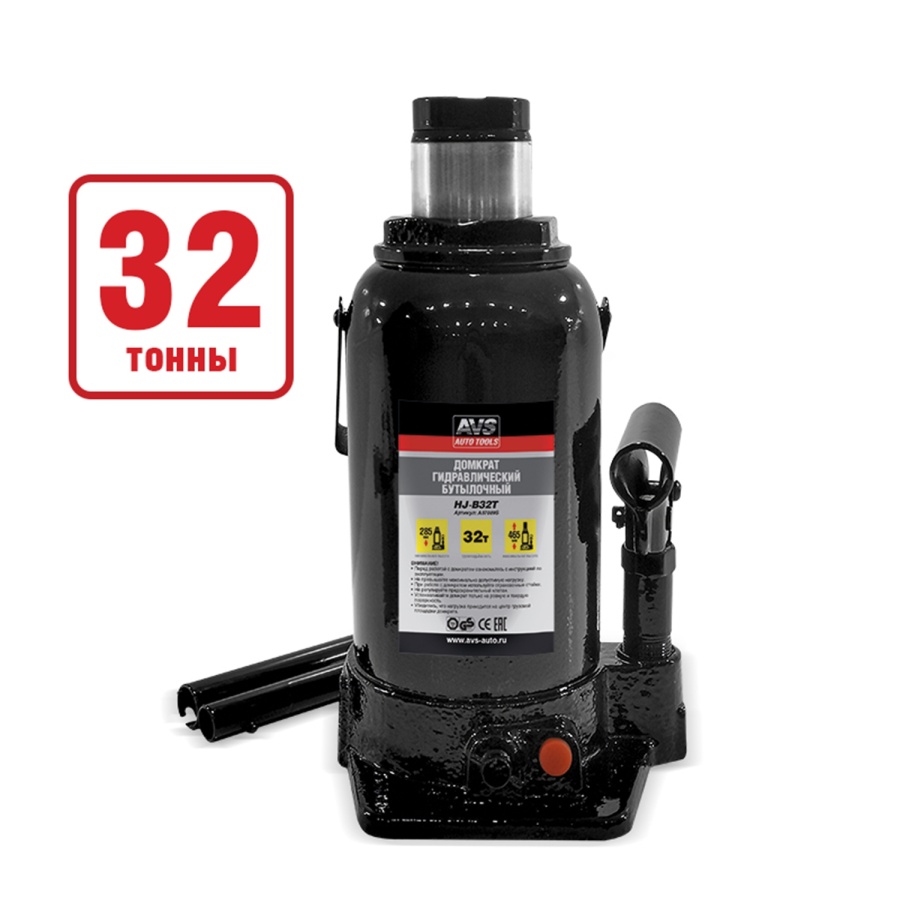 Домкрат гидравлический AVS HJ-B32T, 32т, 285-465мм. с клапаном (сумка, ремкомплект)