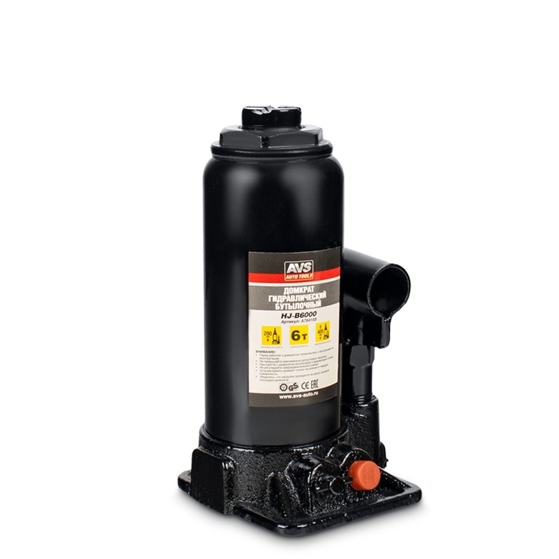 Домкрат гидравлический AVS HJ-B6000, 6т, 200-405мм. с клапаном (сумка, ремкомплект)