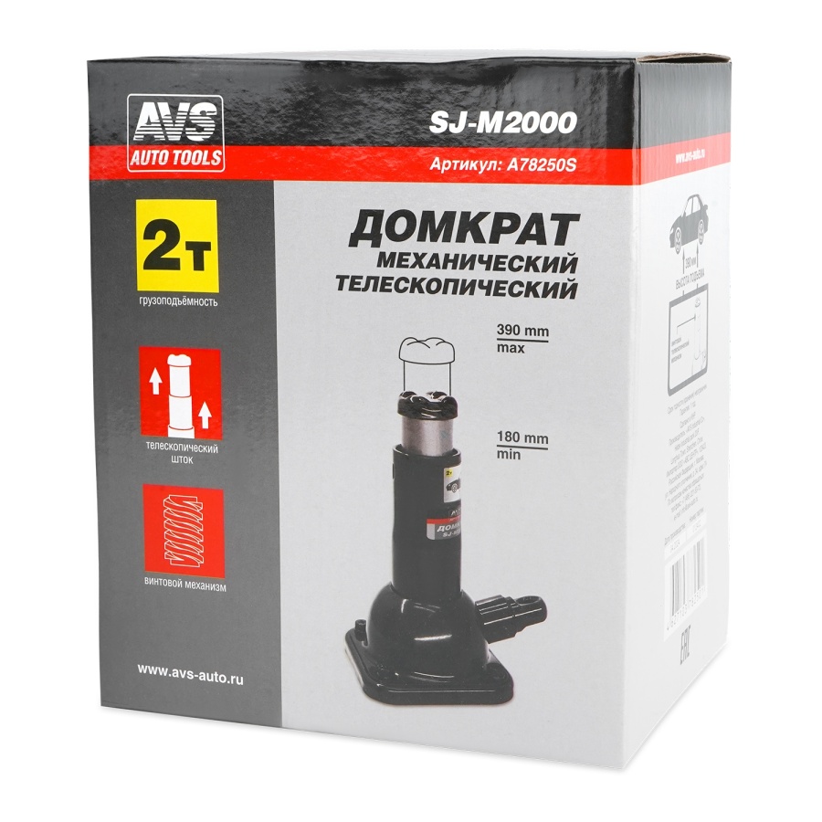 Домкрат винтовой AVS SJ-M2000, 2т, 180-390мм.
