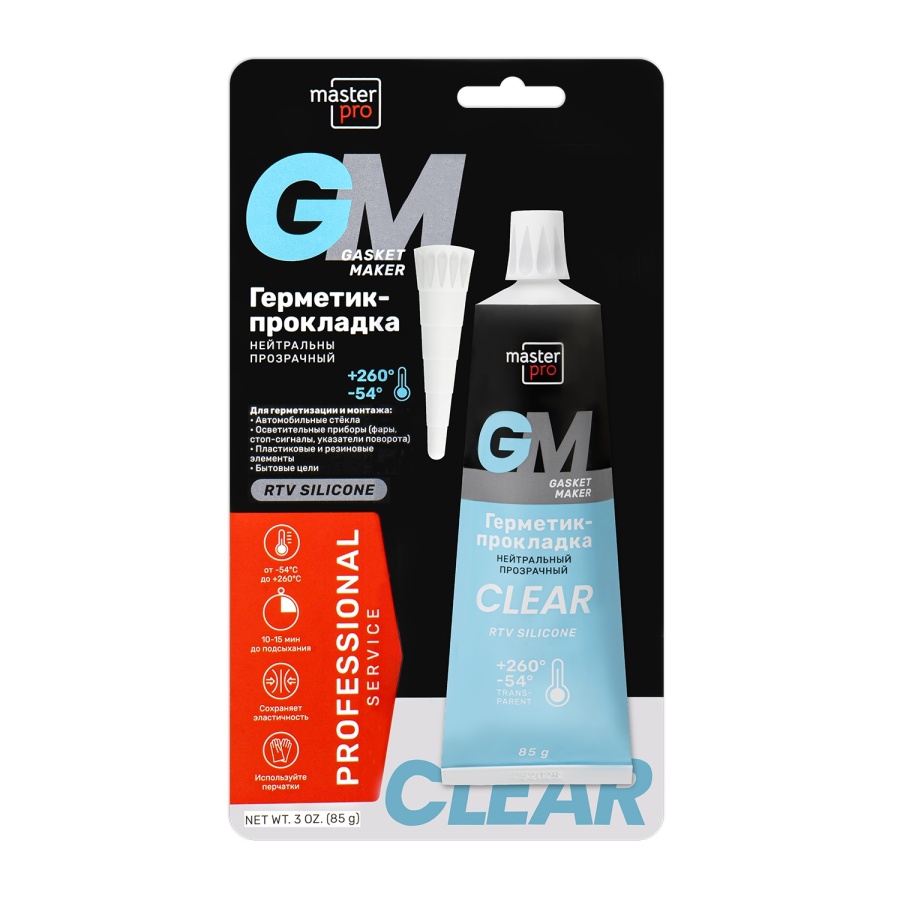 Прозрачный герметик-прокладка (нейтральный) предназначен для герметизации, ремонта и монтажа автомобильных стекол, фар, указателей поворота, стоп-сигналов, различных пластиковых и резиновых элементов. Для уплотнения войлочных, резиновых и пробковых прокладок. Безопасен для кислородных датчиков. Вулканизируется в состояние силиконового каучука при комнатной температуре. Остается прочным и эластичным во всем температурном диапазоне. Может применяться в быту.